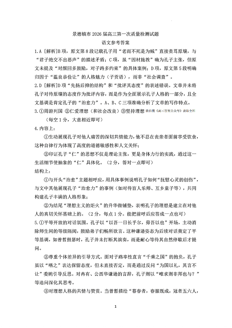 景德镇市2026届高三第一次质量检测 语文答案.pdf