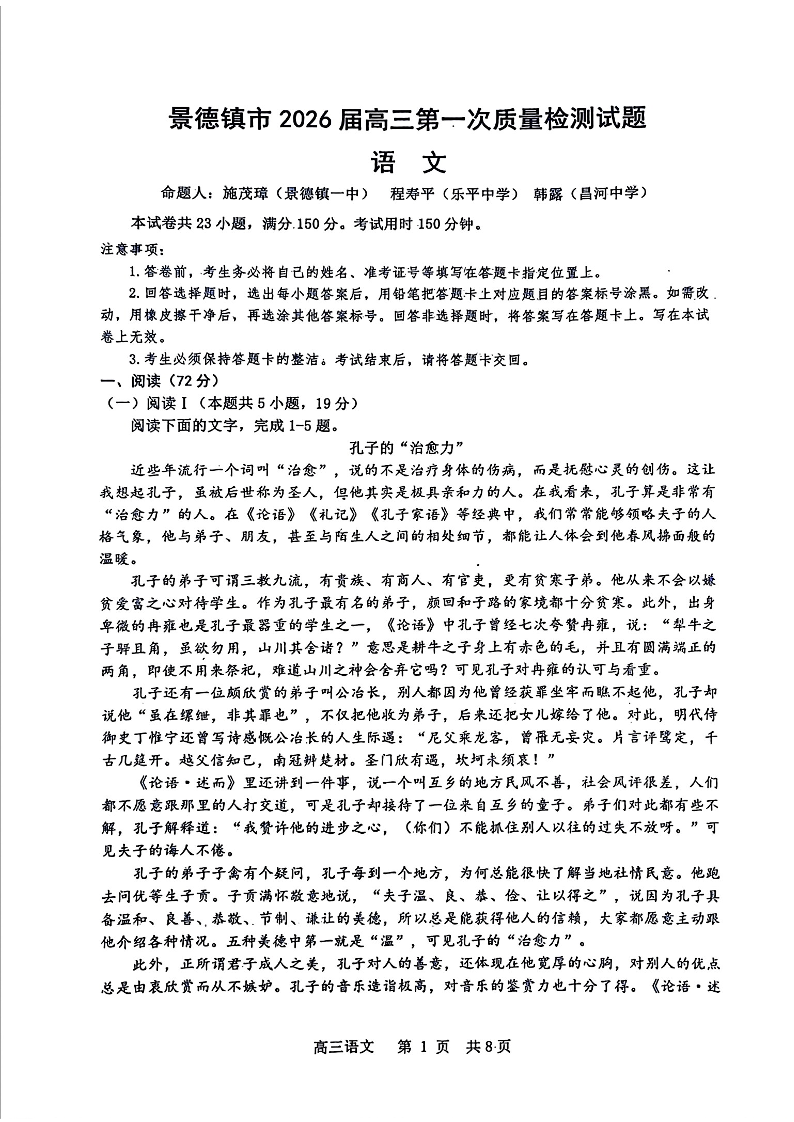 景德镇市2026届高三第一次质量检测 语文.pdf