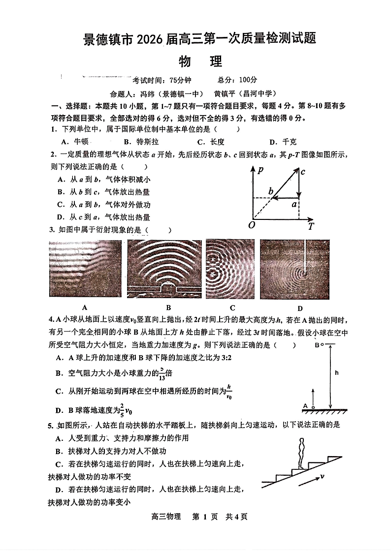 景德镇市2026届高三第一次质量检测 物理.pdf