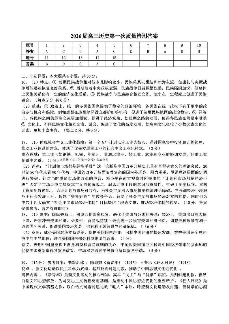 景德镇市2026届高三第一次质量检测 历史答案.pdf