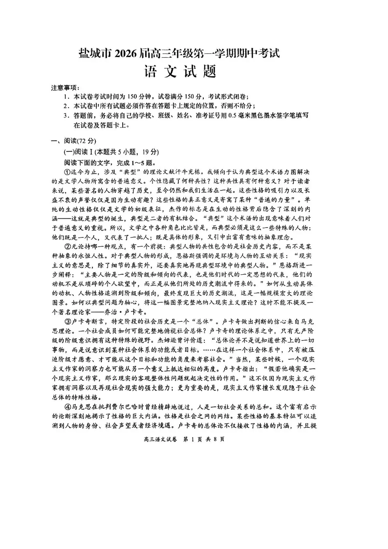 盐城市2026届高三年级第一学期期中考试 语文.pdf