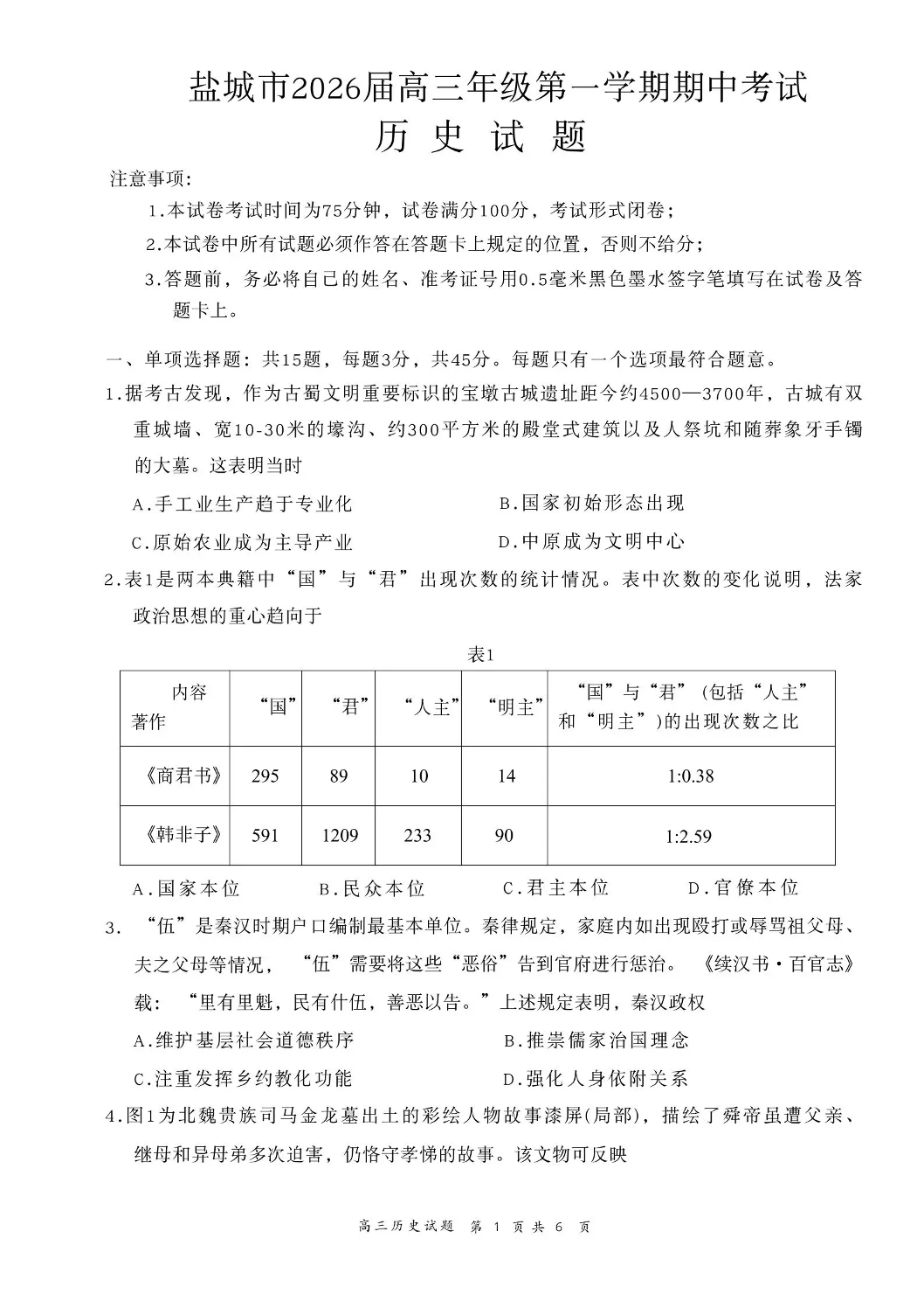 盐城市2026届高三年级第一学期期中考试 历史.pdf