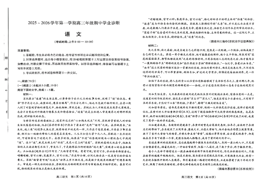 太原市2025~2026学年第一学期高三年级期中学业诊断 语文.pdf