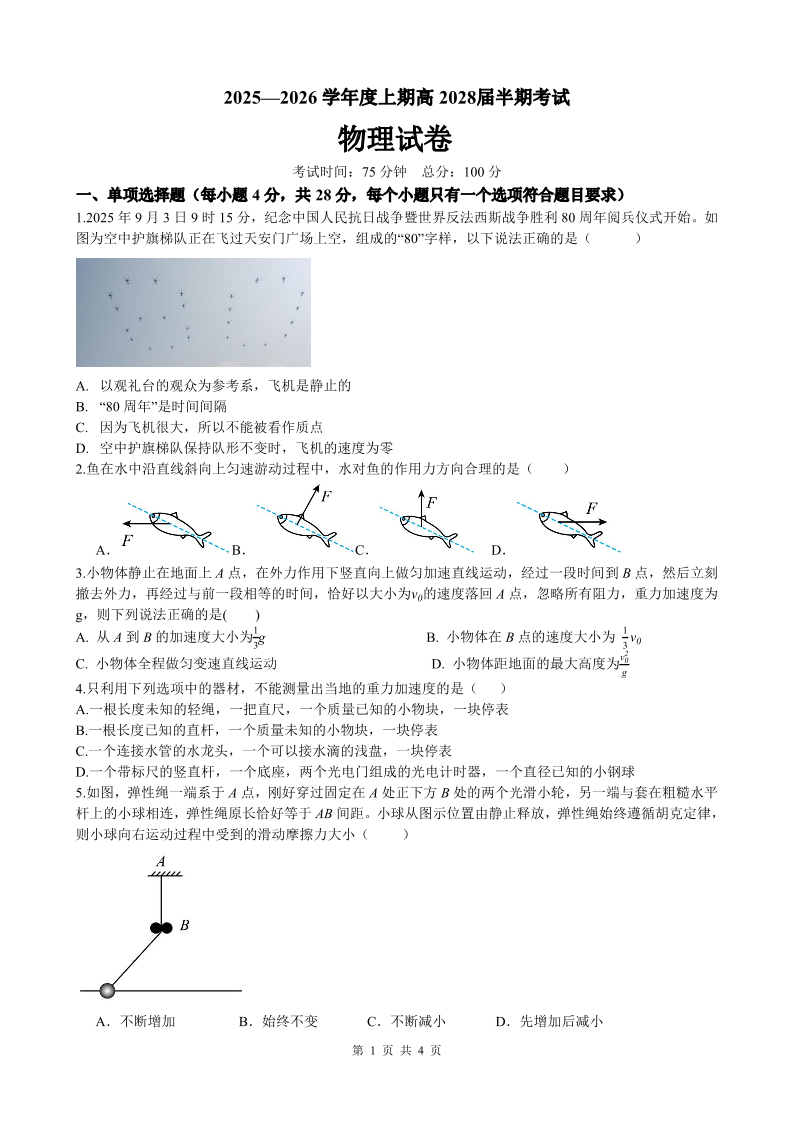 成都市第七中学2025-2026学年高一上学期11月半期考试 物理.pdf