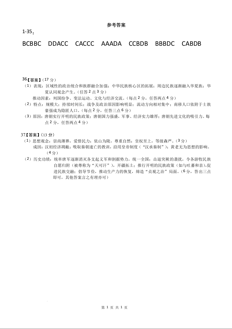 成都市第七中学2025-2026学年高一上学期11月半期考试 历史答案.docx