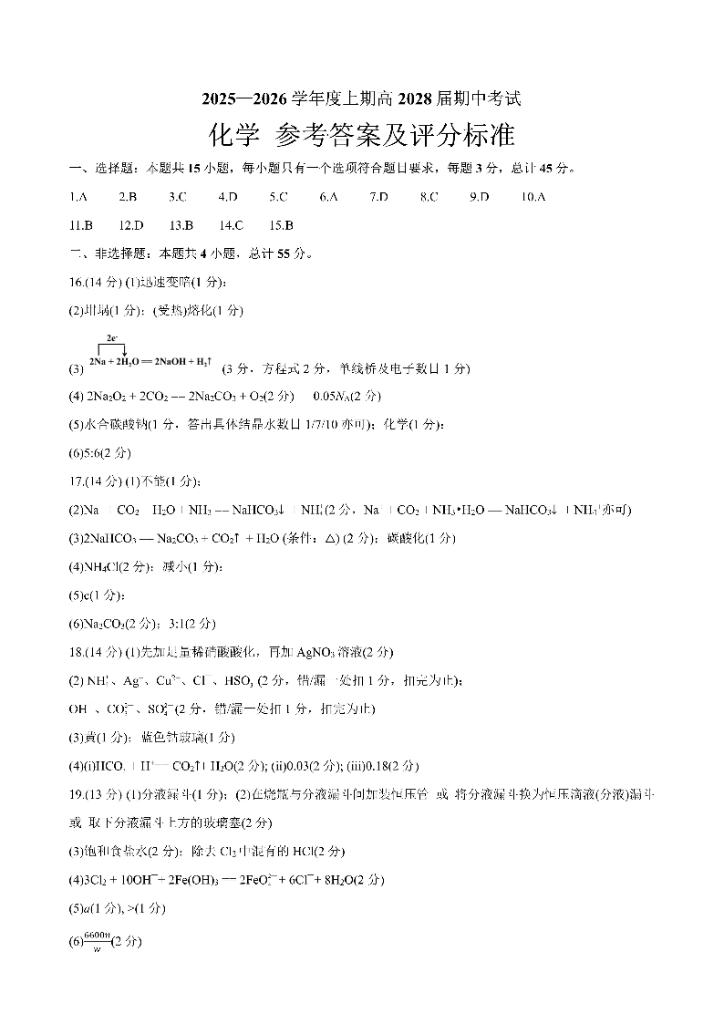成都市第七中学2025-2026学年高一上学期11月半期考试 化学答案.pdf