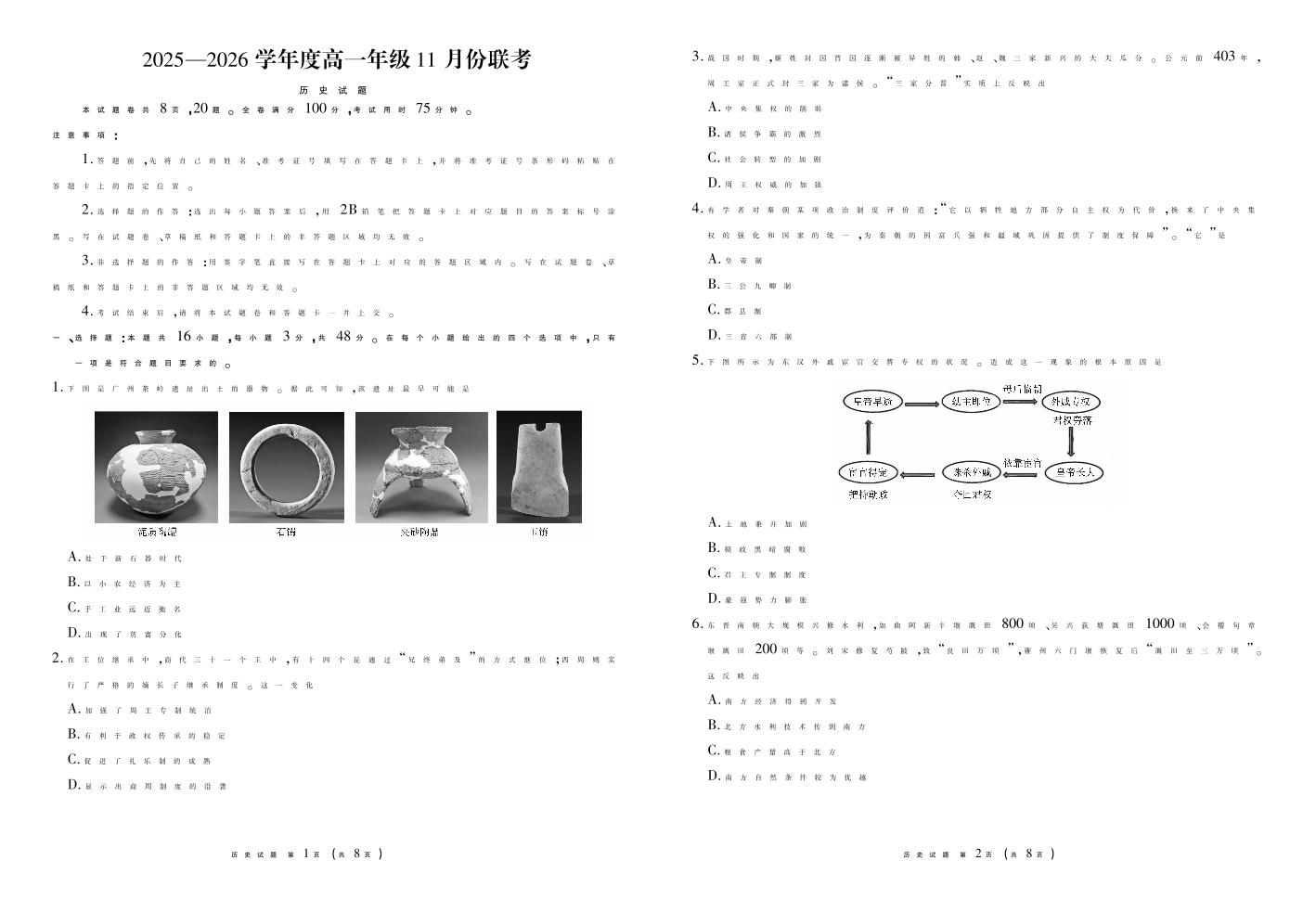 2025-2026学年度高一年级11月份联考 历史.pdf