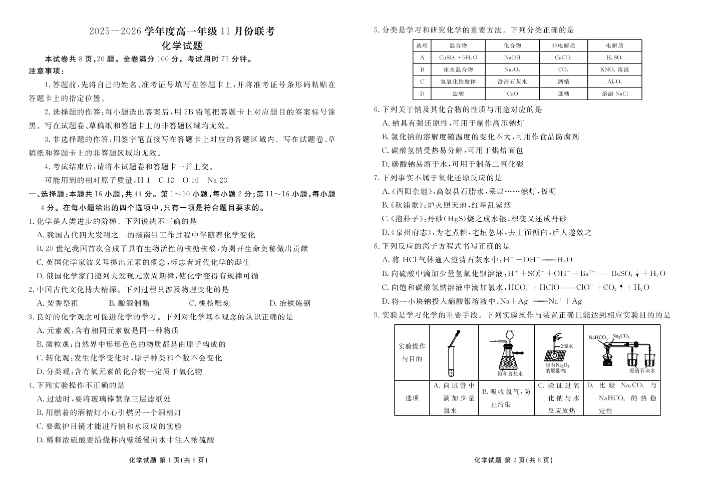 2025-2026学年度高一年级11月份联考 化学.pdf