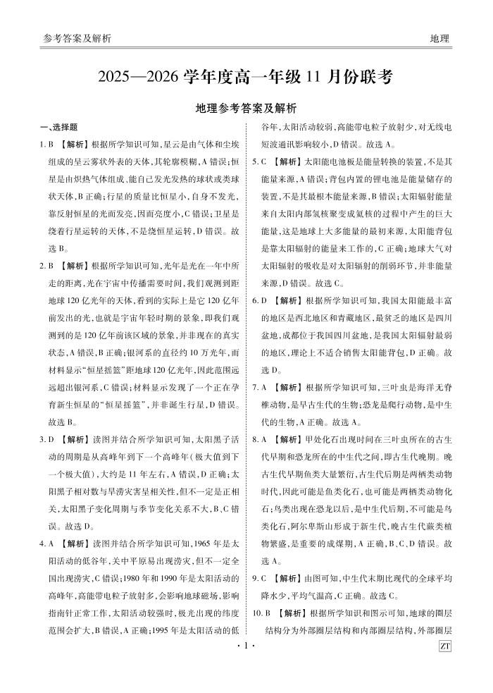 2025-2026学年度高一年级11月份联考 地理ZT版答案.pdf