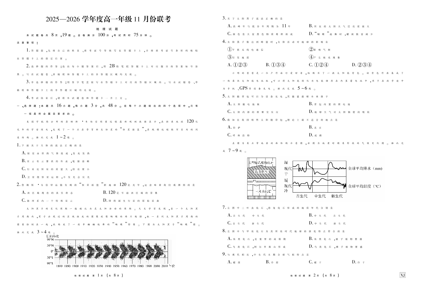 2025-2026学年度高一年级11月份联考 地理XJ版.pdf