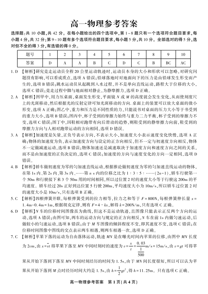 物理答案·安徽省皖江名校联盟2025-2026学年高一上学期期中联考.pdf