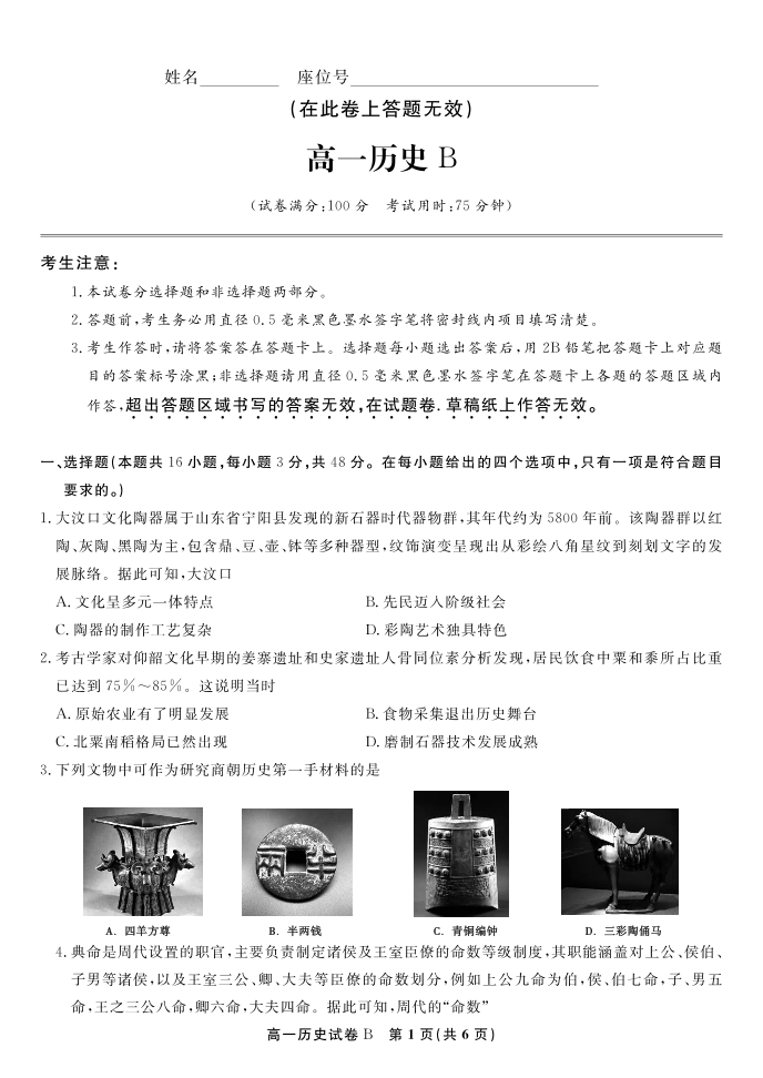 历史B·安徽省皖江名校联盟2025-2026学年高一上学期期中联考.pdf