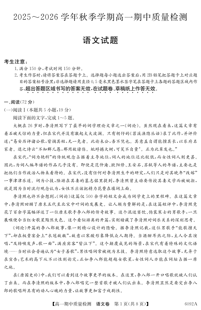 【语文】安徽省华师联盟2025~2026学年秋季学期高一期中质量检测.pdf