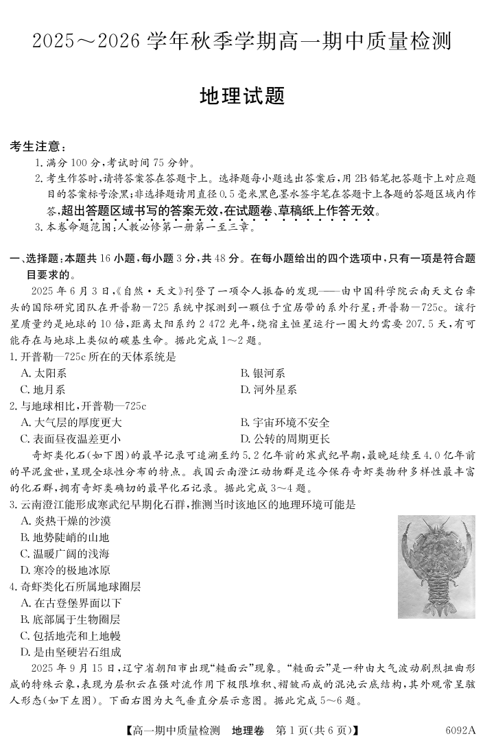 【地理】安徽省华师联盟2025~2026学年秋季学期高一期中质量检测.pdf