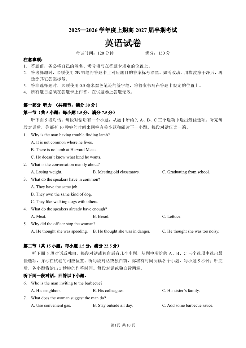 成都市第七中学2025-2026学年高二上学期11月半期考试 英语.pdf