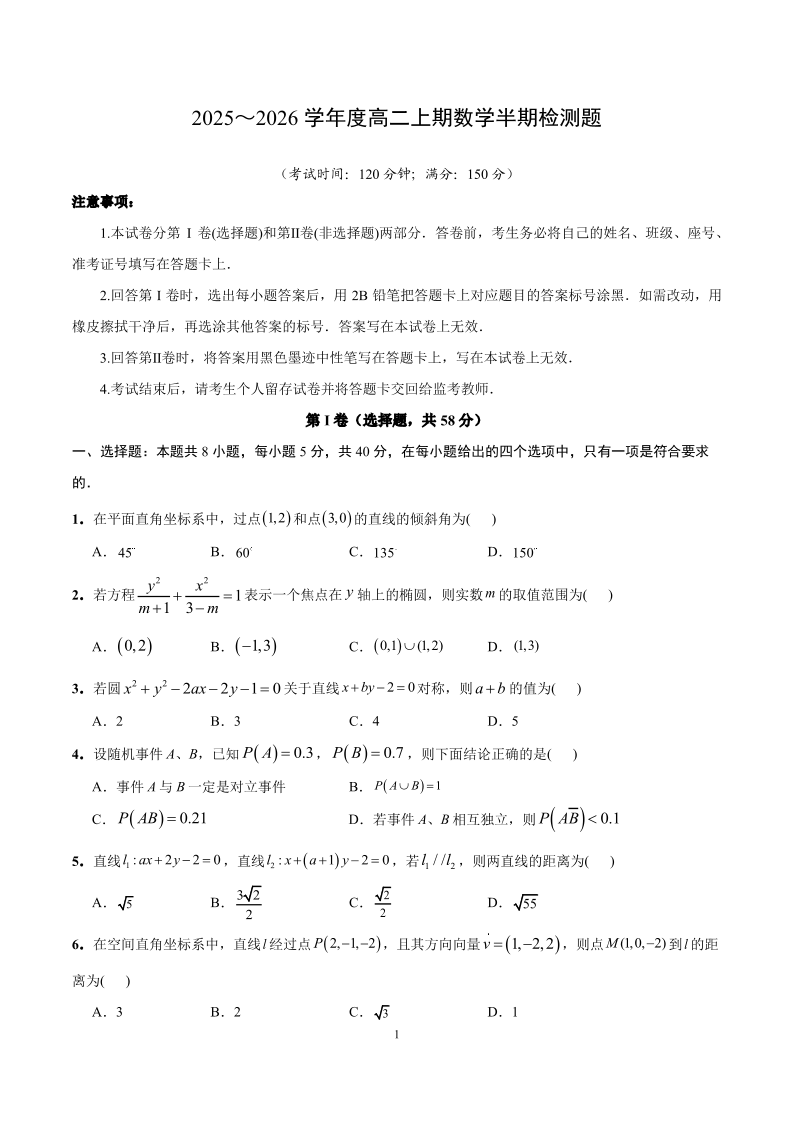 成都市第七中学2025-2026学年高二上学期11月半期考试 数学.pdf