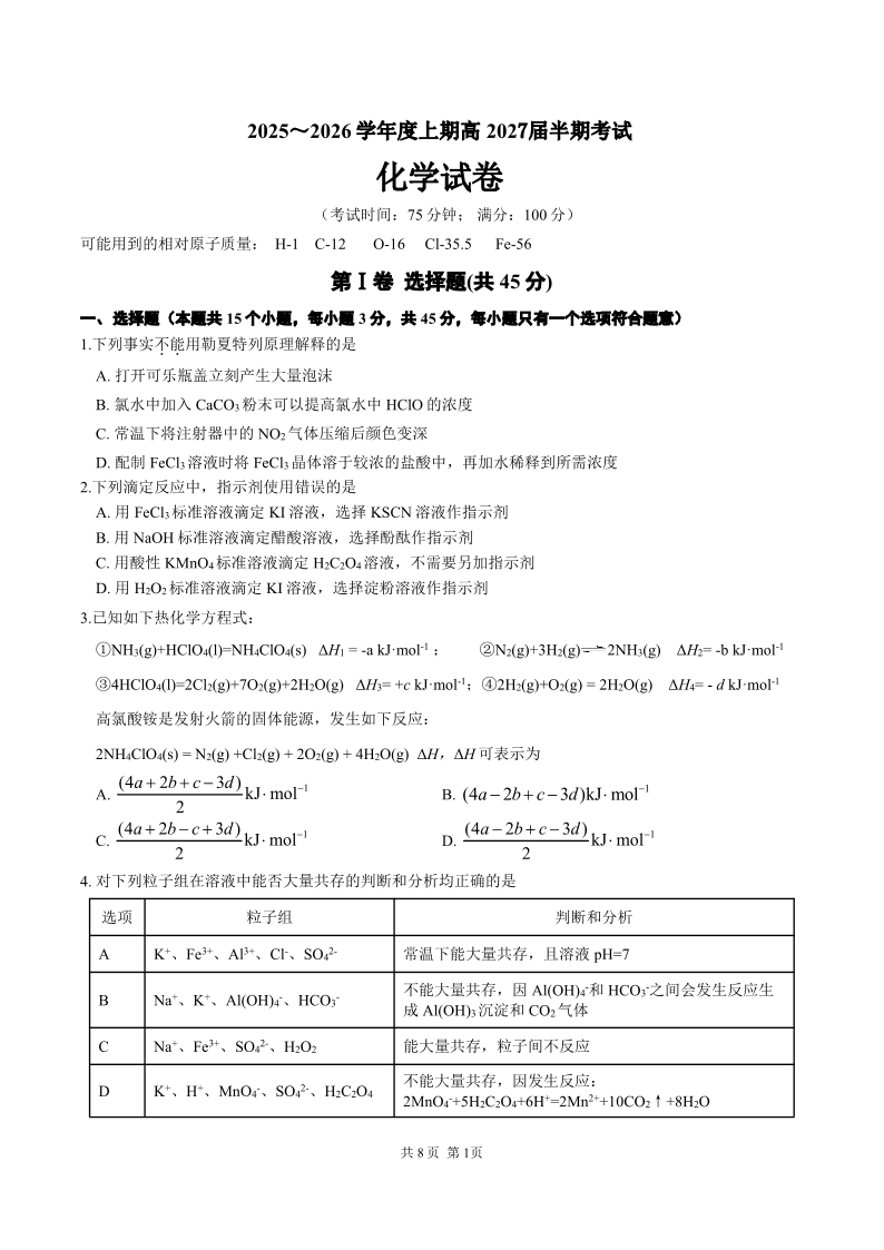 成都市第七中学2025-2026学年高二上学期11月半期考试 化学.pdf