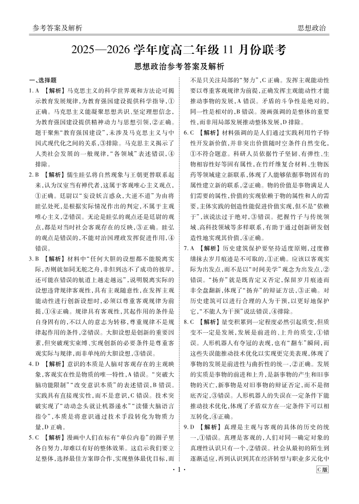 2025-2026学年度高二年级11月份联考 政治C版答案.pdf