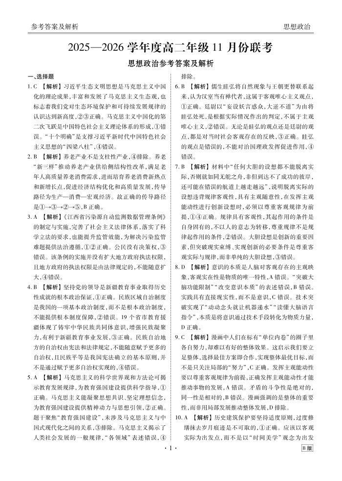 2025-2026学年度高二年级11月份联考 政治B版答案.pdf