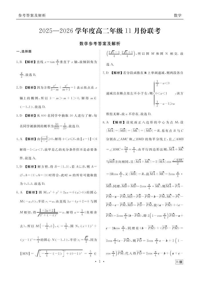 2025-2026学年度高二年级11月份联考 数学B版答案.pdf