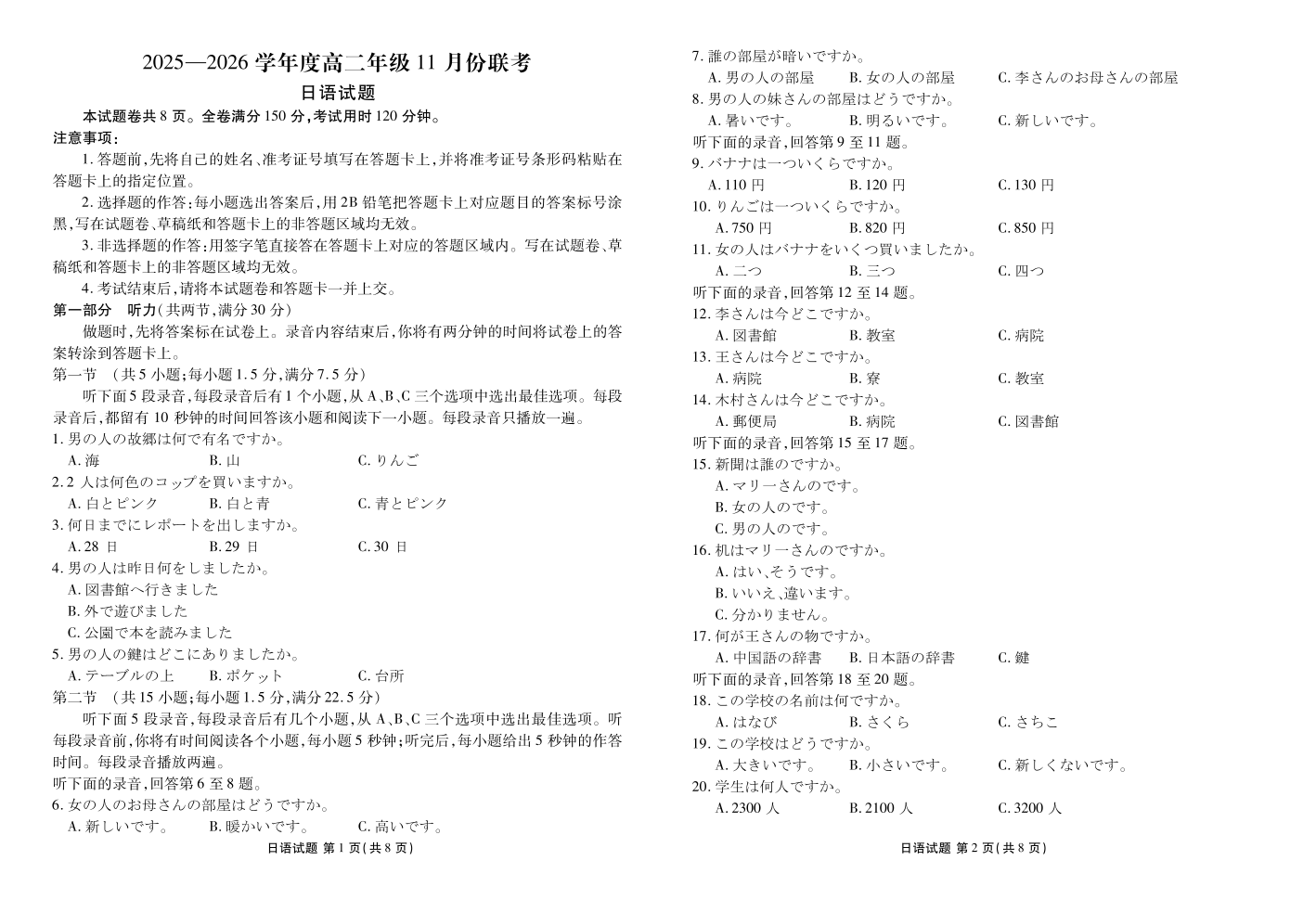2025-2026学年度高二年级11月份联考 日语.pdf