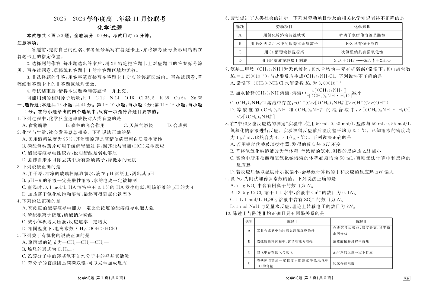 2025-2026学年度高二年级11月份联考 化学B版.pdf