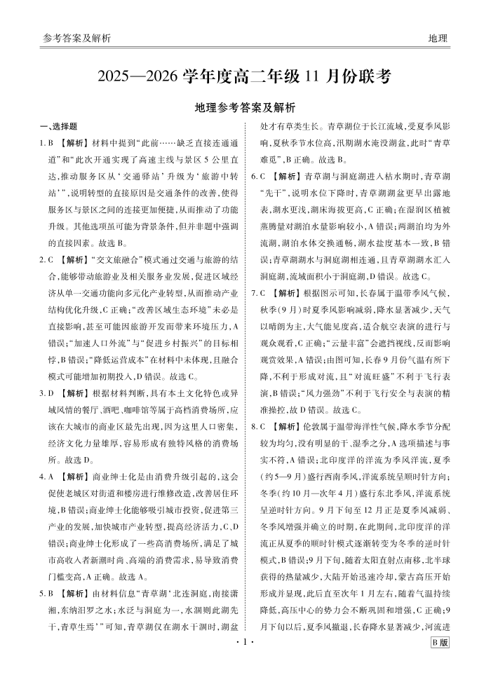 2025-2026学年度高二年级11月份联考 地理B版答案.pdf