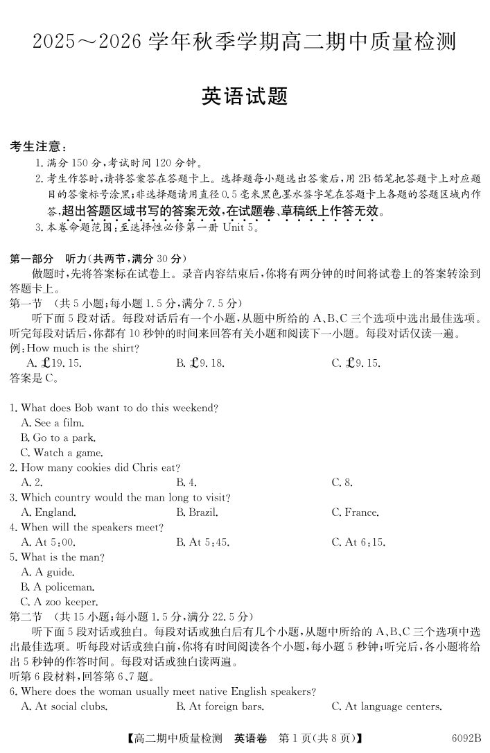 【英语】安徽省华师联盟2025~2026学年秋季学期高二期中质量检测.pdf