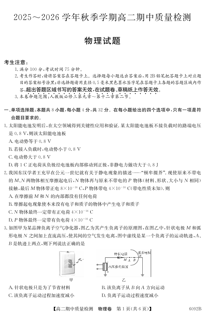 【物理】安徽省华师联盟2025~2026学年秋季学期高二期中质量检测.pdf