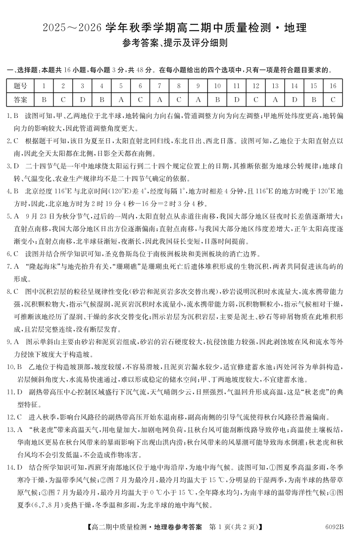 【地理答案】安徽省华师联盟2025~2026学年秋季学期高二期中质量检测.pdf