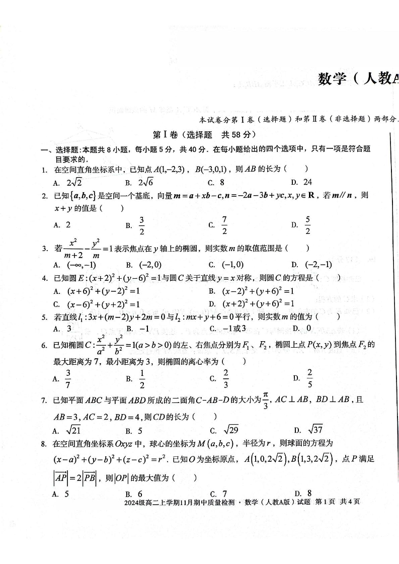 安徽省A10联盟&宿州十三校2024级高二上学期11月期中质量检测 数学.pdf
