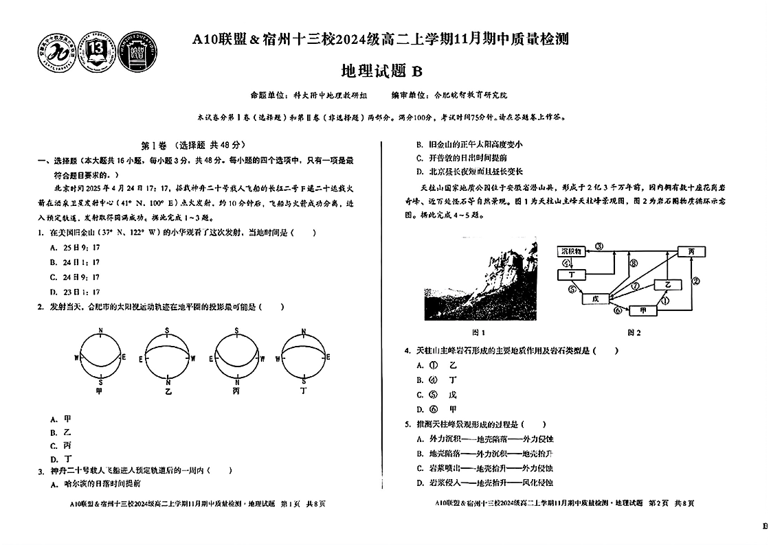 安徽省A10联盟&宿州十三校2024级高二上学期11月期中质量检测 地理.pdf