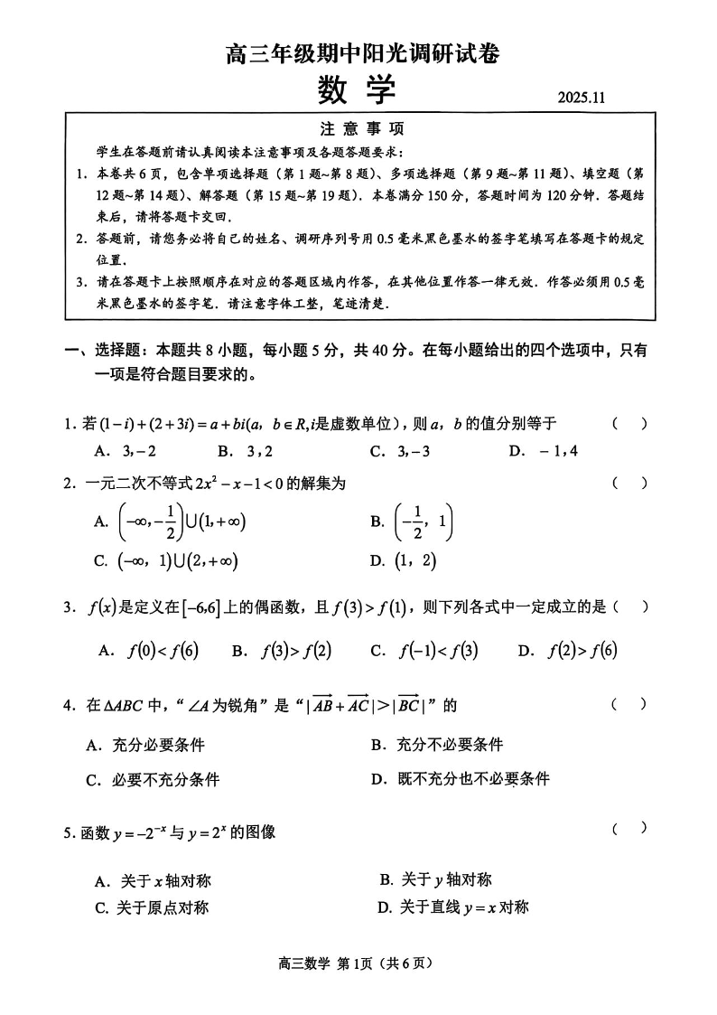 江苏省苏州市2026届高三年级上学期期中阳光调研卷 数学.pdf