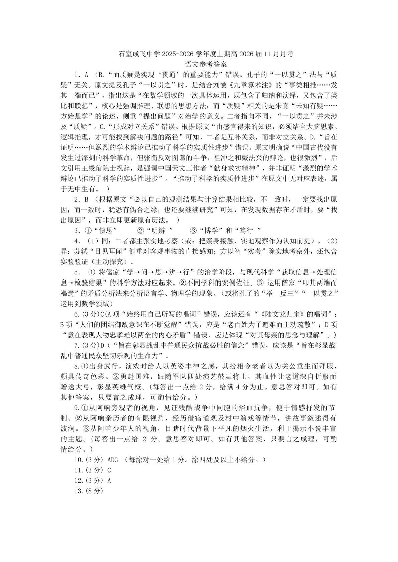 石室成飞中学2025-2026学年高三上学期11月月考 语文答案.pdf