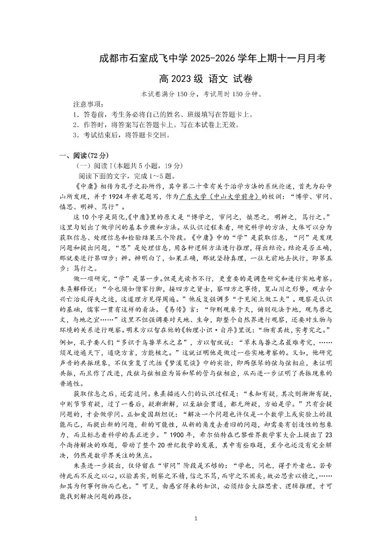 石室成飞中学2025-2026学年高三上学期11月月考 语文.pdf