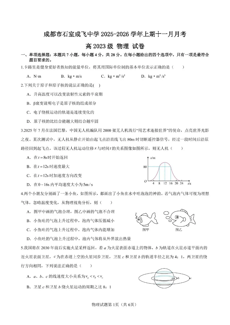 石室成飞中学2025-2026学年高三上学期11月月考 物理.pdf