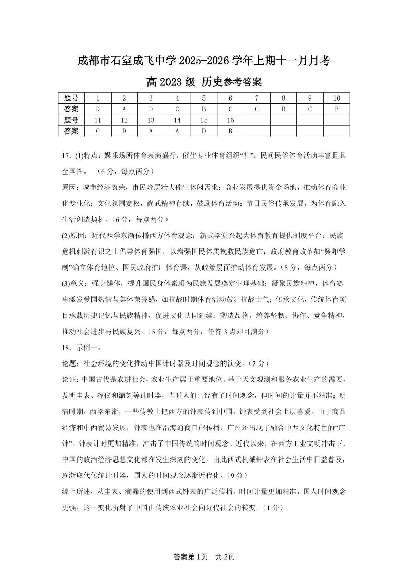 石室成飞中学2025-2026学年高三上学期11月月考 历史答案.pdf