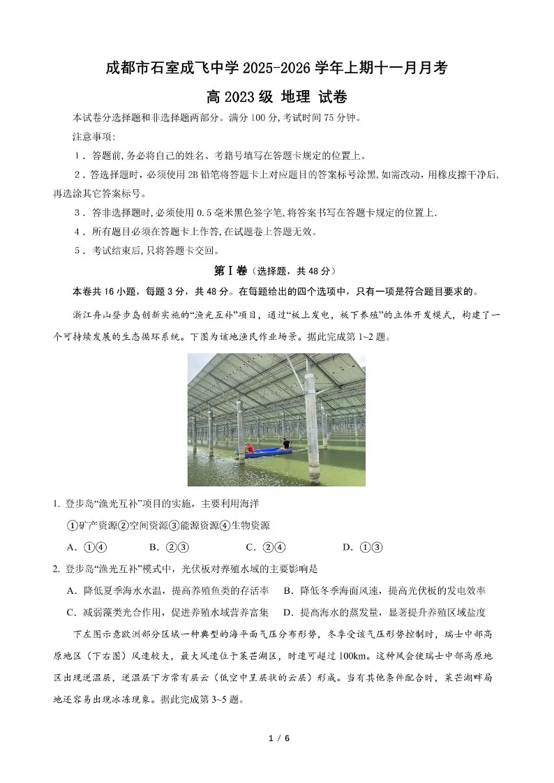 石室成飞中学2025-2026学年高三上学期11月月考 地理.pdf