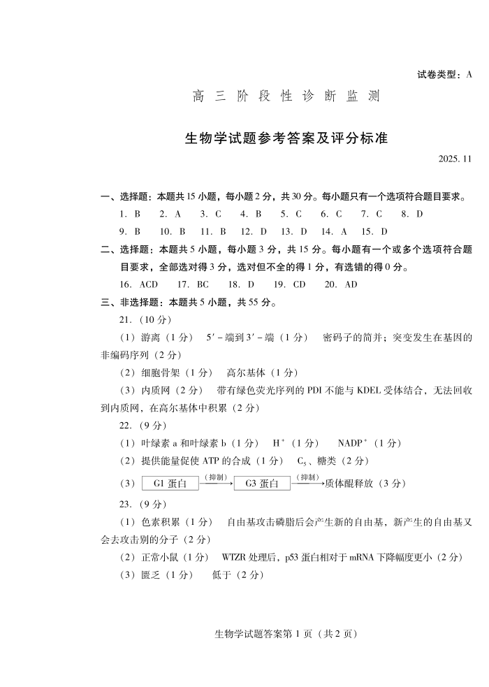 潍坊市2026届高三上学期11月阶段性诊断监测 生物答案.pdf