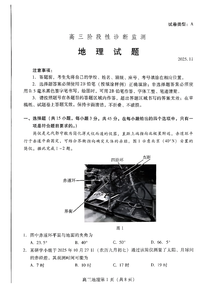 潍坊市2026届高三上学期11月阶段性诊断监测 地理.pdf
