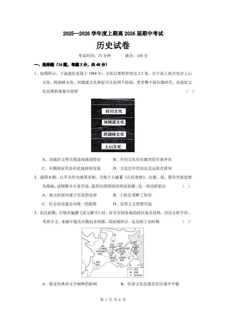 成都市第七中学2025-2026学年高三上学期11月半期考试 历史.pdf