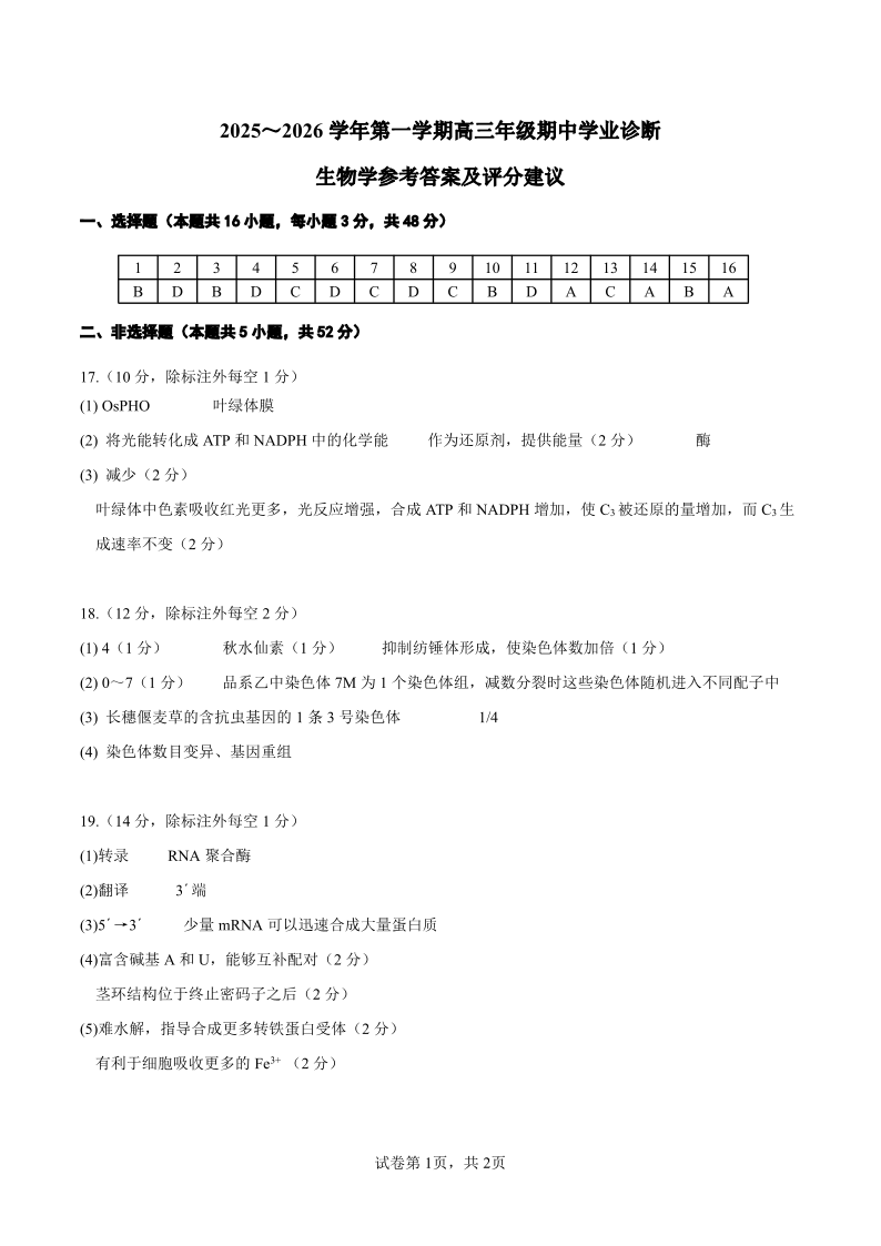 太原市2025~2026学年第一学期高三年级期中学业诊断 生物答案.pdf