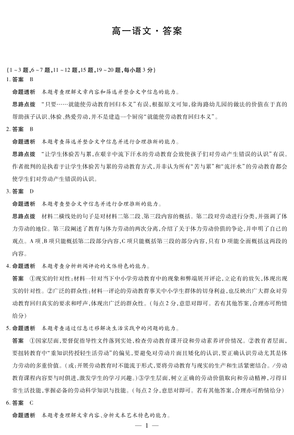 语文湖南高一上期中详细答案.pdf