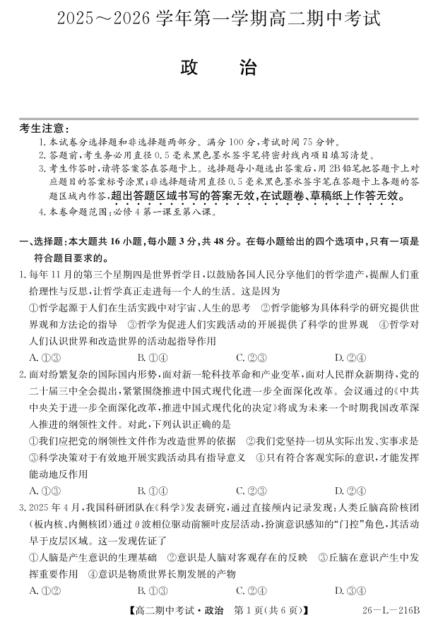 安徽省县中联盟2025-2026学年第一学期高二期中考试 政治.pdf