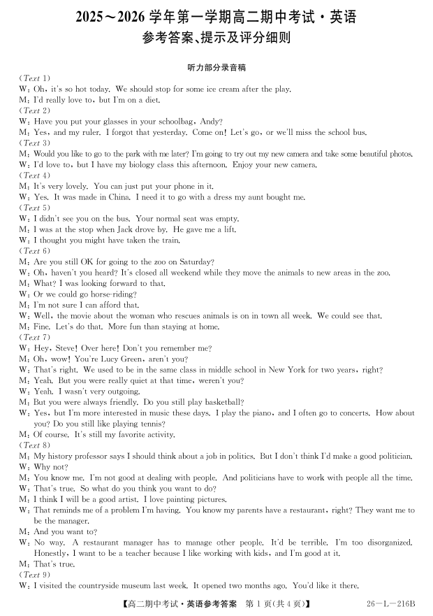 安徽省县中联盟2025-2026学年第一学期高二期中考试 英语答案.pdf