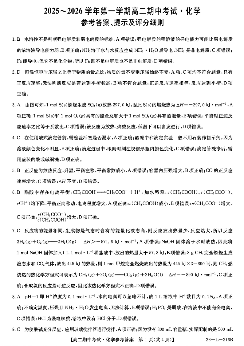 安徽省县中联盟2025-2026学年第一学期高二期中考试 化学答案.pdf