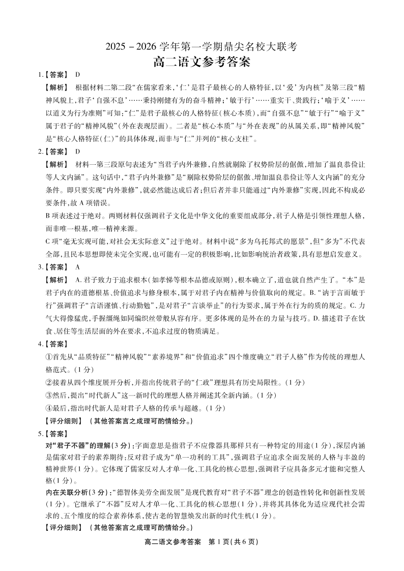 【语文答案】安徽省鼎尖名校大联考2025-2026学年上学期高二11月期中考试.pdf