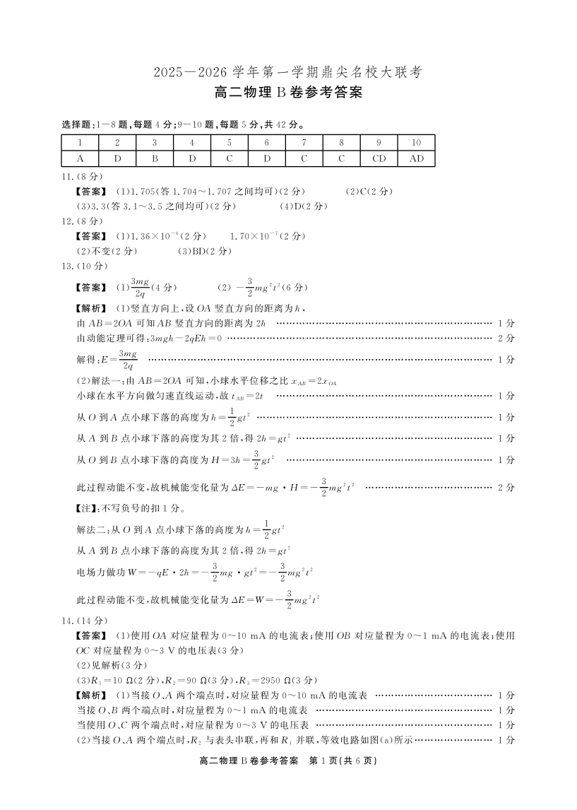 【物理B卷答案】安徽省鼎尖名校大联考2025-2026学年上学期高二11月期中考试.pdf