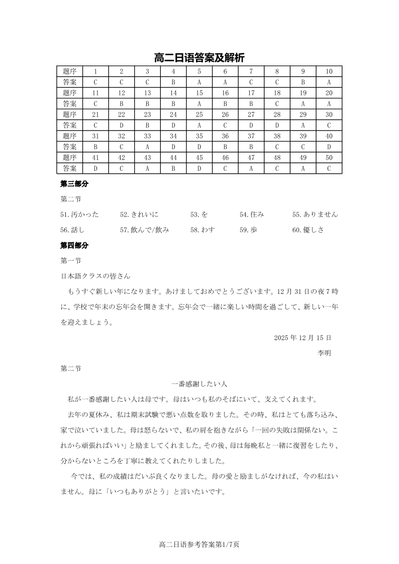 【日语答案】安徽省鼎尖名校大联考2025-2026学年上学期高二11月期中考试.pdf