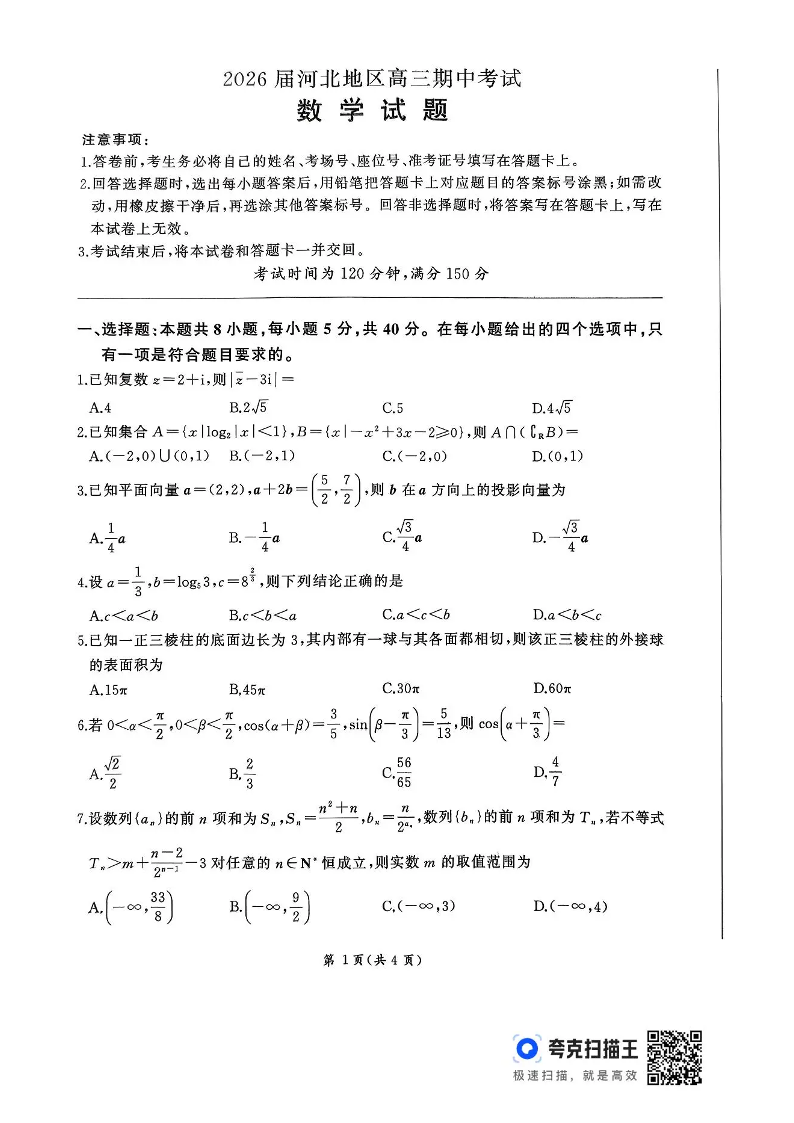 2026届河北地区高三期中考试 数学试题(含答案).pdf